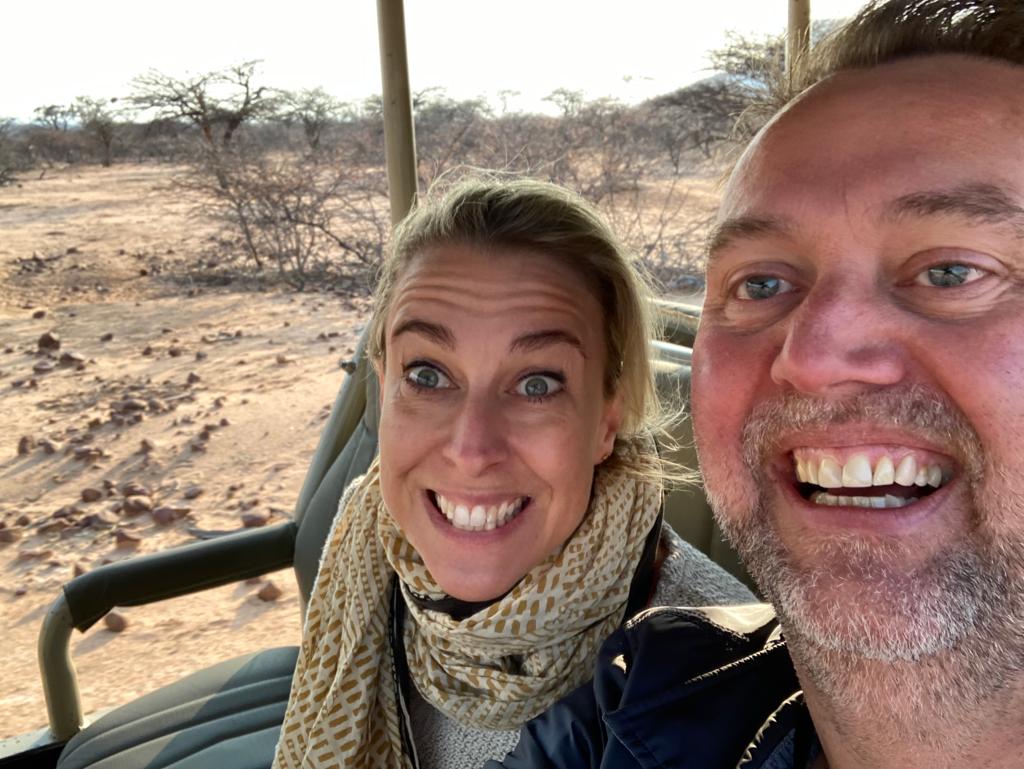 Eind augustus na onze trouwdag zijn we dan eindelijk vertrokken.. niet echt wetende wat ons te wachten stond..dit was namelijk onze eerste keer Afrika! Goed voorbereid gingen we! Bij aankomst stond Jacobus ons netjes op te wachten, hij heeft ons alle tips and tricks verteld..vervolgens stond onze (4x4) hylux Toyota voor ons klaar - reis bureau had eigenlijk een andere wagen in gedachte maar wij wilde toch wel erg graag de Hylux, wij waren erg blij dat deze voor ons klaar stond..en toen begon onze reis pas echt! Na een opstart gewenning met links rijden en richtingwijzer konden we nadat we windhoek hadden verlaten beginnen met genieten van de omgeving, het uitstrekte Afrika.. Onze eerste stop was bij Okinjiowa, we waren wat aan de late kant dus de bewaker zei dat we onderweg geen tijd hadden om te stoppen.. mmm die begreep ik eerst niet maar toen we onderweg waren begreep ik t.. de eerste dieren kwamen ons tegemoet; zebra’s, springbokken, Dickdicks, kudu’s..Ja je begrijpt t wel.. we moesten wel stoppen & foto’s maken.. Uitereindelijk bij de lodge aangekomen..fantastisch uitzicht om t land met wilde dieren, werden we warm verwelkomt met een glaasjes huis ice tea., even rustig bijkomen van onze lange reis.. Toen naar onze eigen lodge, fantastisch uitzicht.. Met aan de zijkant een water poeltje voor de dieren.. die daar gretig gebruik van maakte dus fam. knobbelzwijn kwam even langs..echt fantastisch., de volgende dag zijn we met een Safari guide op zoek gegaan naar luipaarden die ze daar in een reservaat in de gaten houden.. we waren op zoek naar 1tje maar vonden verliefd stel..echt zo mooi! Die middag gingen we op doorreis maar Etoshia.. Heel anders, we gingen daar een hele dag met een tourguide op pad.. wij vonden het een beetje een de beeksebergen in het groot.. iets te toeristisch. Vandaar uit gingen we door naar Damaraland- het land van de Flinstones vonden wij met de ronde rotsen.. wat een fantastisch en totaal andere wereld weer, ook daar werden we weer warm onthaald met limonade. En wat een mooie hutjes- lodge sliepen we met een buitenbad en douche ook weer met een fantastisch uitzicht. De mensen waren ook zo attent en lief. In de ochtend gingen we op pad op zoek naar de olifanten en die vonden we.. en een heel jong olifantje kwam naar onze wagen ik kon hem aanraken.. waaaa..heel bijzonder! Vervolgens gingen we naar swakupmond.. dat was niet echt iets voor ons. Een dorp.. We gaan door naar sossusvlei en deadvlei en bigdaddy.. deze heb ik bewandeld ik dacht ik ga ervoor.. ook weer een hele bijzondere ervaring. I die it! En als laatste meest bijzondere stop voor ons gingen we naar kwessi-dunes. Wat een mooi stukje land en mensen! Er was ook een water well voor de dieren dus de Oryx - het nationale dier van Afrika - die kwamen daar met grote getallen water drinken.. En we hebben er onder de sterren geslapen.. wat een ervaring! We hebben er met een bushguide door de duinen gelopen en die heeft ons de white dancing spider laten zien.. Wij hebben echt zo genoten van onze Safari reis in Afrika.. wij zullen die niet vergeten dat is een ding wat zeker is.. mooi land, dieren en mensen!!