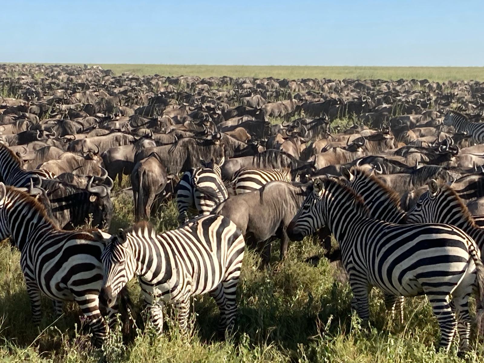 De Matoke Tanzania Kalverseizoen reis was een onvergetelijk ervaring, niet alleen zagen we de big 5, we zagen ook tienduizenden Gnoes en Zebra's met duizenden kalveren. Onvoorstelbaar. Ook de Impala, Topi, Hartebeest, Thomson en Grantgazelle hadden kleine kalveren in hun groep. Ook zagen we een drietal leeuwen families met hun welpen, welpen van een 4-tal maanden oud tot 1 jaar. En een jachtluipaard met 2 welpen van een 8-tal maanden spelend vlak naast de jeep. De gids/chauffeur Adrien kon elk dier spotten ook al bevond het zich op een afstand van 300-400m. Alle lodges en camps die we hadden in Serengeti, Ndutu, Ngorongoro en Tarangiri waren zeer netjes en de maaltijden waren western style.