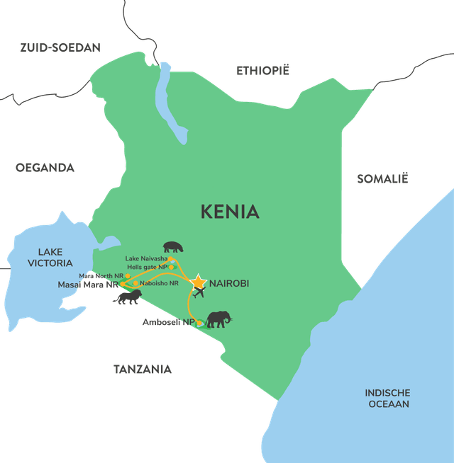 Het Swahili woord ‘safari’ is ontstaan in Kenia in tijden dat de eerste reizigers op expeditie gingen in de wildernis van Kenia. De Grote Riftvallei domineert het landschap van Centraal-Kenia en tijdens deze reis bezoekt u Lake Naivasha met de nijlpaarden. Ook safari's aan de voet van de hoogste berg van Afrika, de Kilimanjaro ontbreken niet aan deze reis.