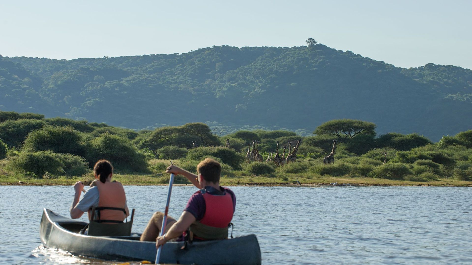 Lake Manyara is de thuisbasis van een ongelooflijke verscheidenheid aan vogelsoorten. Vanuit de kano kunt u giraffen, olifanten, buffels en andere dieren zien grazen langs de oever. Geniet van het adembenemende landschap en de omringende natuur, en ervaar dit park vanuit een heel ander perspectief — vanaf het water.